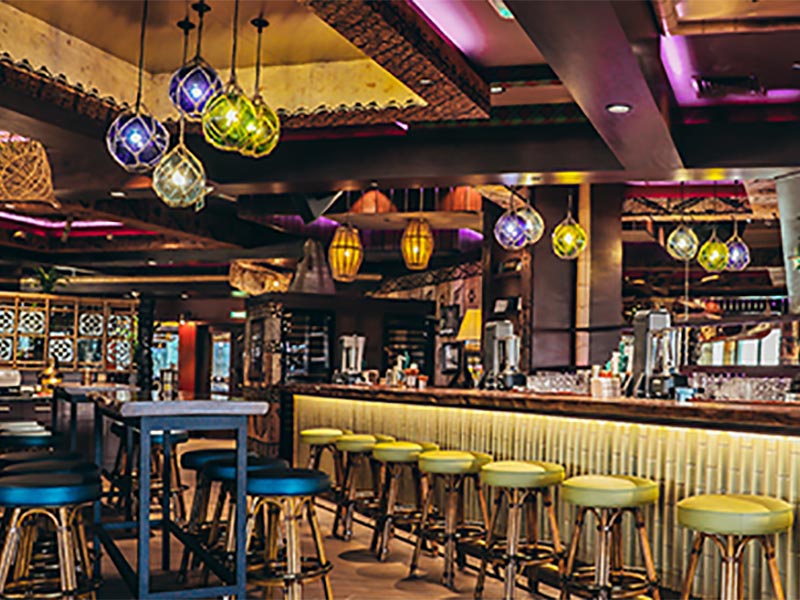 Immerse yourself in the enchanting ambiance of Tahitian Village by Trader Vic's, where lush and colorful surroundings, adorned with bamboo and natural wood details, transport you to a Tahitian oasis. The seamless integration of Tahitian huts into the design creates a laid-back paradise, offering a tranquil escape and a genuine sense of being whisked away to the idyllic charm of the South Pacific.
