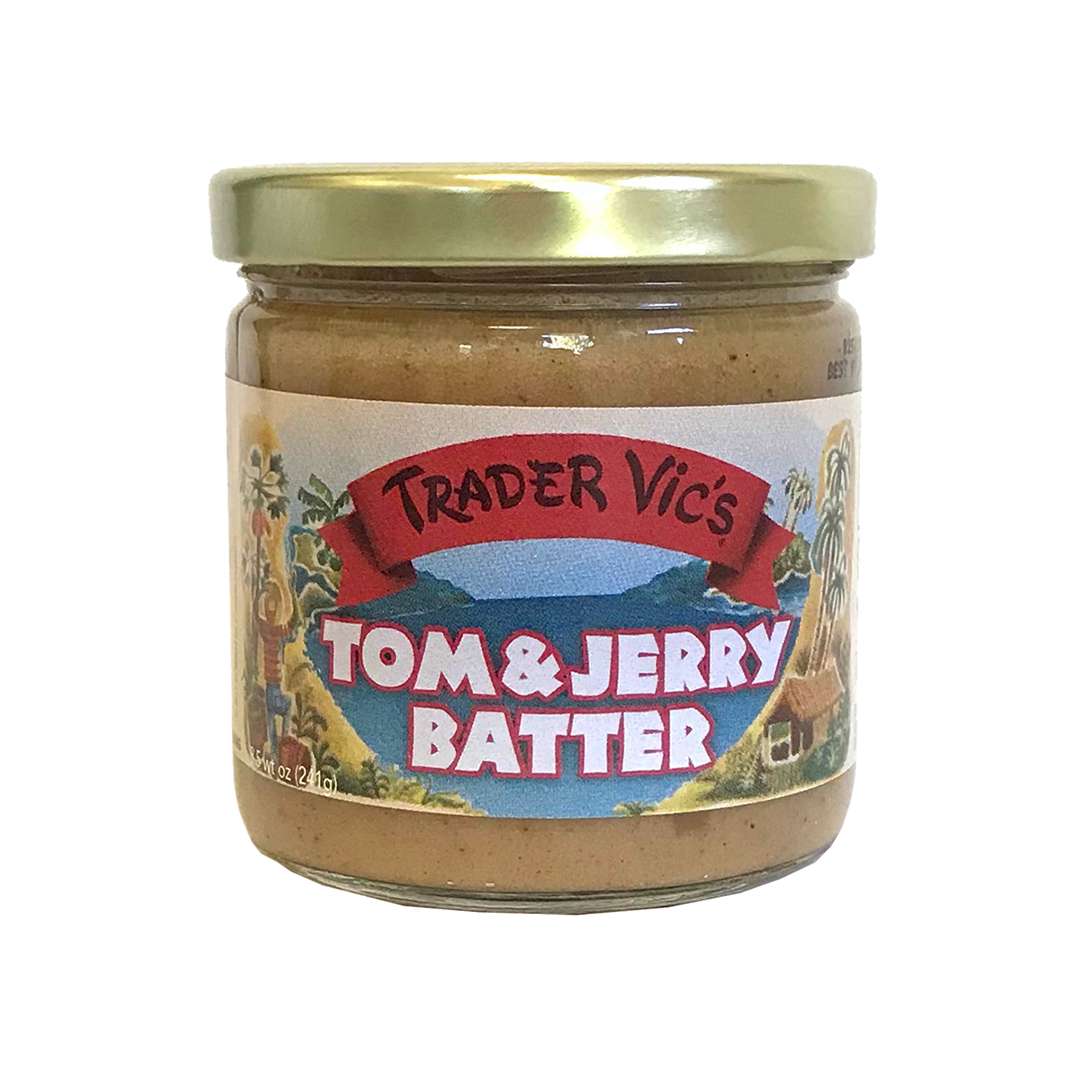 Tom & Jerry Recipe: 2 heaping teaspoons of Trader Vic’s Tom & Jerry Batter, 1 ounce dark rum or brandy, and just add boiling water, hot tea or coffee.